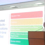 Mr. Rohit Pandya from Ultratech Cement sponsors this program, gave a presentation about their products for rainwater harvesting, like pervious concrete, and a model of a building showing a system of collecting rainwater from the rooftop and making use of this water for flushing and plantation in the society region.
